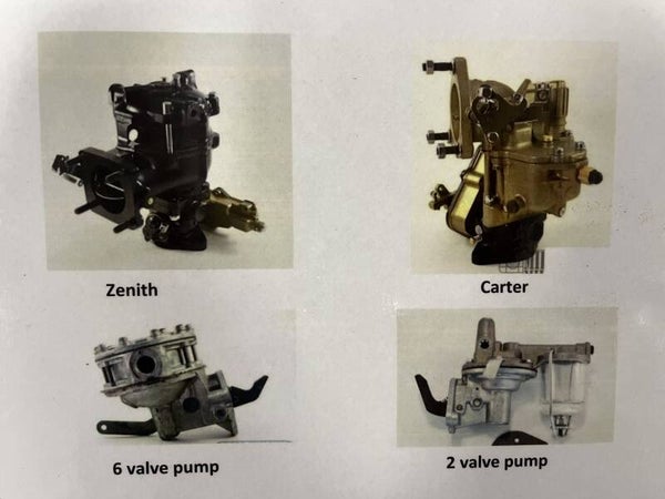 Please specify when ordering which carburetor and fuel pump you have (as you can see on the picture).